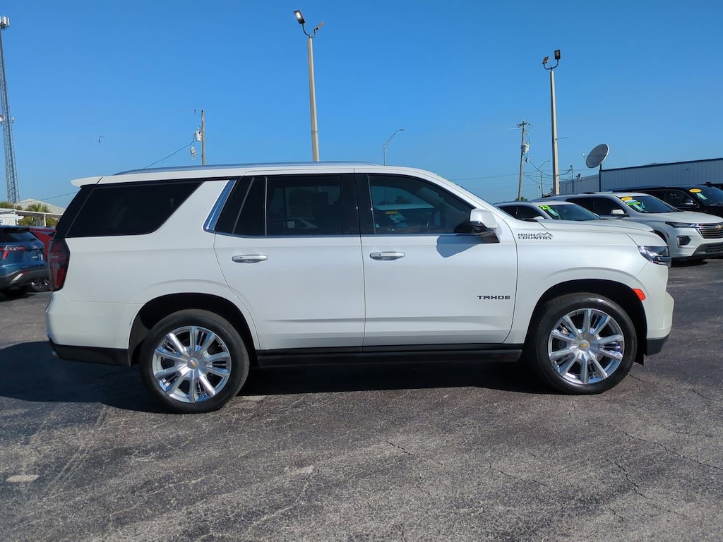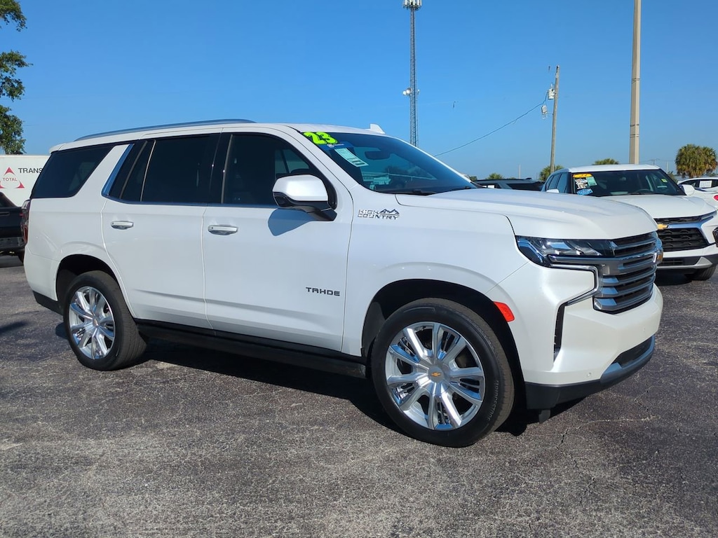 HIGH COUNTRY PREFERRED EQUIPMENT GROUP includes standard equipment, GVWR, 7500 LBS. (3402 KG) (STD), ENGINE, 6.2L ECOTEC3 V8 with Dynamic Fuel Management, Direct Injection and Variable Valve Timing, includes aluminum block construction (420 hp [313 kW] @ 5600 rpm, 460 lb-ft of torque [624 Nm] @ 4100 rpm) (STD), AUDIO SYSTEM, CHEVROLET INFOTAINMENT 3 PREMIUM SYSTEM WITH GOOGLE BUILT-IN 10.2" diagonal HD color touchscreen, includes multi-touch display, AM/FM stereo, Bluetooth streaming audio for music and most phones; featuring wireless Android Auto and Apple CarPlay capability for compatible phones, advanced voice recognition, in-vehicle apps, personalized profiles for infotainment and vehicle settings (STD), ASSIST STEPS, POWER-RETRACTABLE with perimeter lighting, ADAPTIVE CRUISE CONTROL (Beginning with start of production through October 2, 2022, vehicles will be forced to include (07Z) Not Equipped with Adaptive Cruise Control and Enhanced Automatic Emergency Braking, which removes Adaptive Cruise Control and Enhanced Automatic Emergency Braking. Vehicles will instead include Electronic Cruise Control and Automatic Emergency Braking. See dealer for details or the window label for the features on a specific vehicle.), Wireless charging (Beginning October 31, 2022 through November 20, 2022, certain vehicles will be forced to include (00C) Not Equipped with Wireless Charging, which removes Wireless Charging. See dealer for details or the window label for the features on a specific vehicle.), Wireless Apple CarPlay/Wireless Android Auto, Wipers, front intermittent, Rainsense, Wiper, rear intermittent with washer, Windshield, solar absorbing, Windows, power with rear Express-Down, Window, power with front passenger Express-Up/Down, Window, power with driver Express-Up/Down, Wi-Fi Hotspot capable (Terms and limitations apply. See onstar.com or dealer for details.), Wheel, full-size spare, 17" (43.2 cm), Warning tones headlamp on, driver and right-front passenger seat belt unfasten and turn signal on, Visors, driver and front passenger illuminated vanity mirrors, sliding, USB data ports, 2, one type-A and one type-C, located within center console, USB charging-only ports, 4, (2) located on rear of center console and (2) in 3rd row (1 left and 1 right side below quarter glass side window).