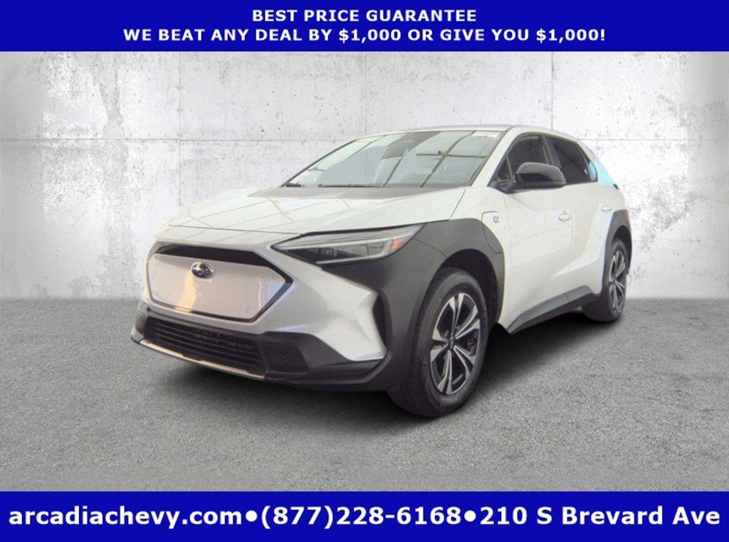 STANDARD MODEL, BLACK, CLOTH UPHOLSTERY, Wireless Phone Connectivity, Window Grid And Roof Mount Antenna, Wheels w/Full Wheel Covers, Voice Activated Dual Zone Front Automatic Air Conditioning, Vehicle Stability Control (VSC) Electronic Stability Control (ESC), Variable Intermittent Wipers w/Heated Wiper Park, Trip Computer, Transmission w/Driver Selectable Mode. This Subaru Solterra has a dependable Electric engine powering this Automatic transmission.
